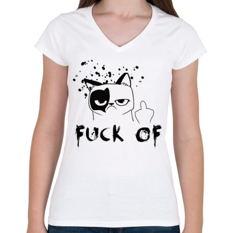 1 kép PRINTFASHION fck1 - Női V-nyakú póló - Fehér