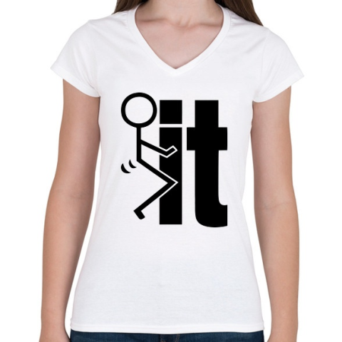 1 kép PRINTFASHION Fck it 2 - Női V-nyakú póló - Fehér