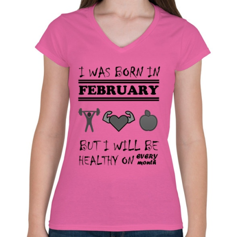 1 kép PRINTFASHION Februárban születtem de minden hónapban egészségesen élek - Női V-nyakú póló - Rózsaszín
