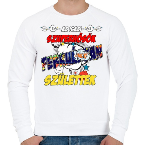 1 kép PRINTFASHION Februári Szuperhős - Férfi pulóver - Fehér
