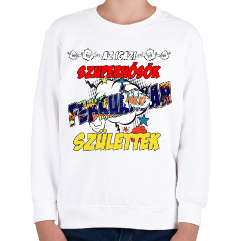 1 kép PRINTFASHION Februári Szuperhős - Gyerek pulóver - Fehér