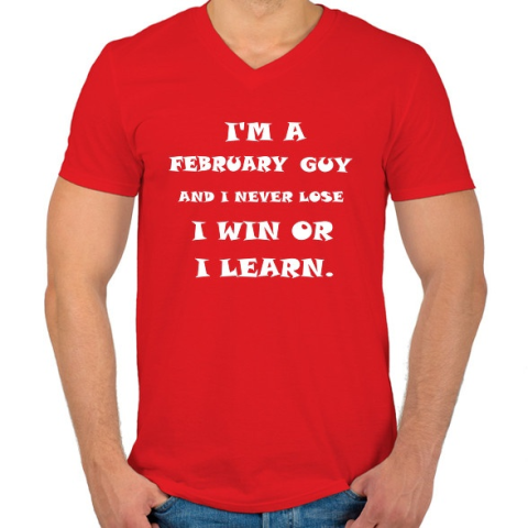 1 kép PRINTFASHION Februári vagyok és nem veszítek hanem tanulok - Férfi V-nyakú póló - Piros
