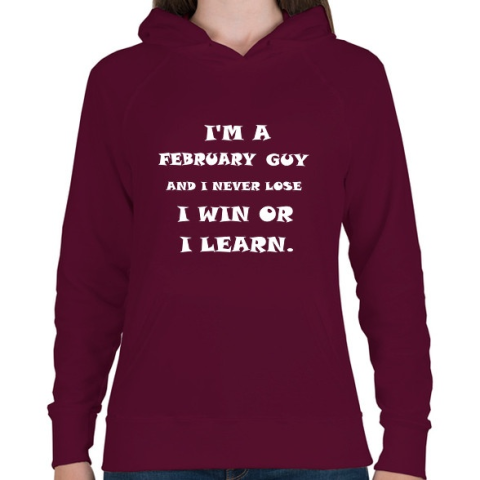 1 kép PRINTFASHION Februári vagyok és nem veszítek hanem tanulok - Női kapucnis pulóver - Bordó