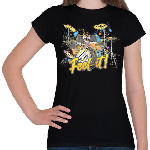 1 kép PRINTFASHION Feel it! - Dobolós - Női póló - Fekete