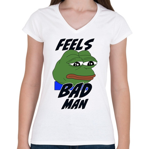 1 kép PRINTFASHION Feels bad man meme - Női V-nyakú póló - Fehér