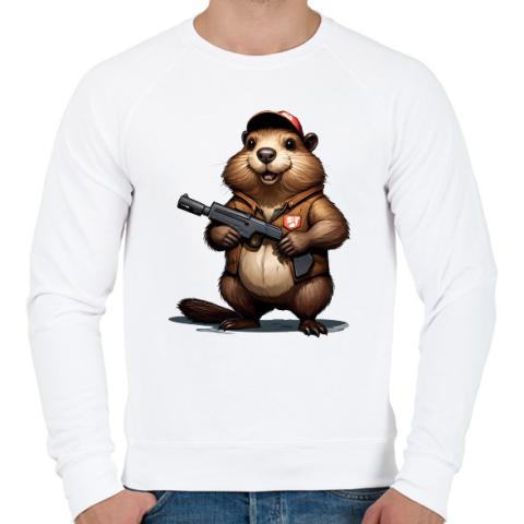 1 kép PRINTFASHION fegyveres bober - Férfi pulóver - Fehér