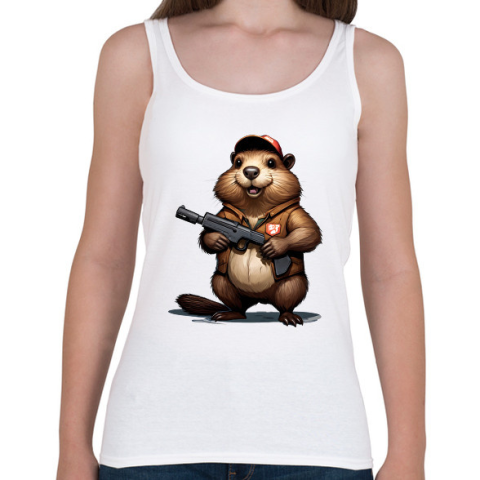 1 kép PRINTFASHION fegyveres bober - Női atléta - Fehér