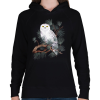 1 kép PRINTFASHION Fehér bagoly - Női kapucnis pulóver - Fekete