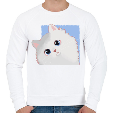 1 kép PRINTFASHION Fehér cica - Férfi pulóver - Fehér