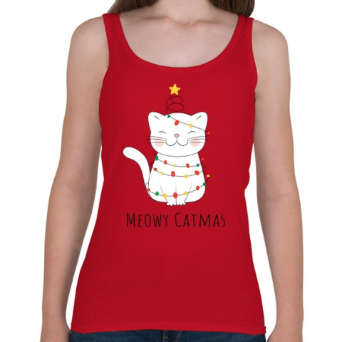 1 kép PRINTFASHION Fehér cica karácsonyi égőkkel - Női atléta - Cseresznyepiros