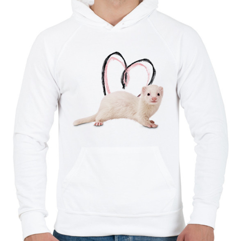 1 kép PRINTFASHION fehér görény szívecskével - Férfi kapucnis pulóver - Fehér
