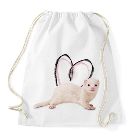 1 kép PRINTFASHION fehér görény szívecskével - Sportzsák, Tornazsák - Fehér