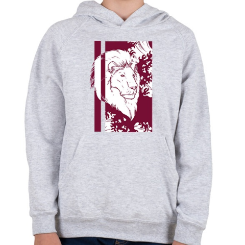1 kép PRINTFASHION Fehér oroszlán - Gyerek kapucnis pulóver - Sport szürke