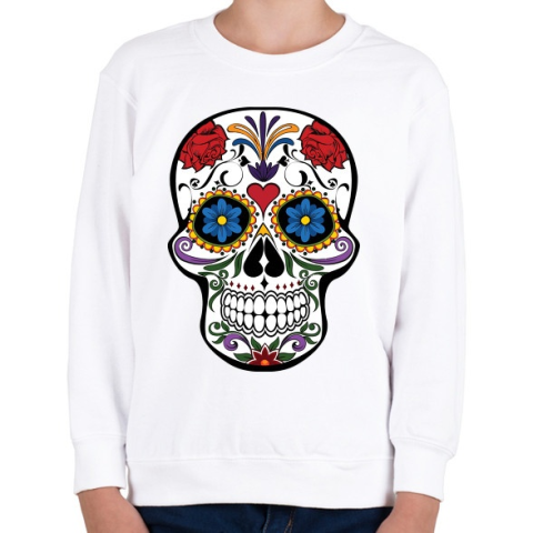 1 kép PRINTFASHION Fehér, piros és lila calavera illusztráció - Gyerek pulóver - Fehér