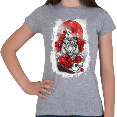 1 kép PRINTFASHION Fehér tigris - Női póló - Sport szürke