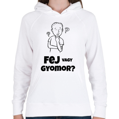 1 kép PRINTFASHION FEJ VAGY GYOMOR - Női kapucnis pulóver - Fehér