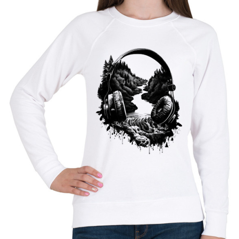 1 kép PRINTFASHION Fejhallgató a természetben - Női pulóver - Fehér