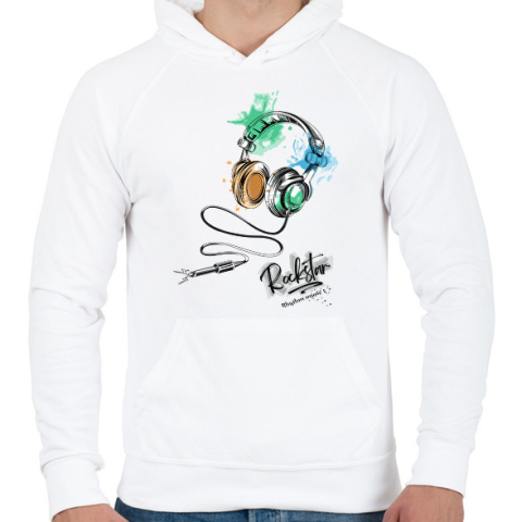 1 kép PRINTFASHION Fejhallgató - Férfi kapucnis pulóver - Fehér