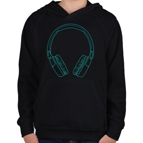 1 kép PRINTFASHION Fejhallgató - Gyerek kapucnis pulóver - Fekete