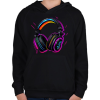 1 kép PRINTFASHION Fejhallgató - Gyerek kapucnis pulóver - Fekete