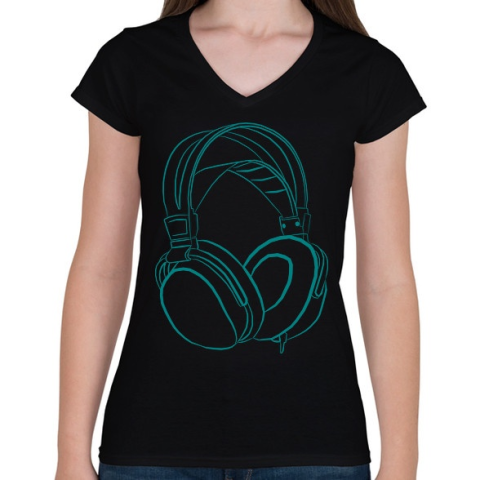 1 kép PRINTFASHION fejhallgató - Női V-nyakú póló - Fekete