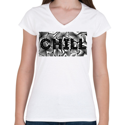 1 kép PRINTFASHION Fekete CHILL - Női V-nyakú póló - Fehér