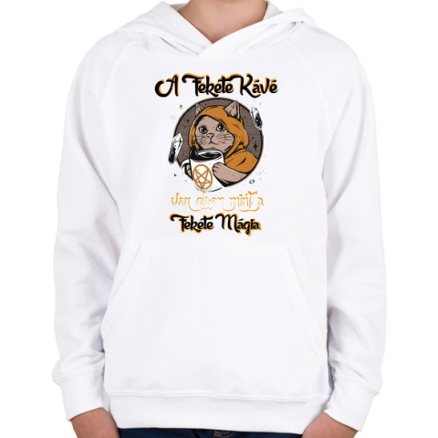 1 kép PRINTFASHION Fekete Kávé - Fekete Mágia - Gyerek kapucnis pulóver - Fehér