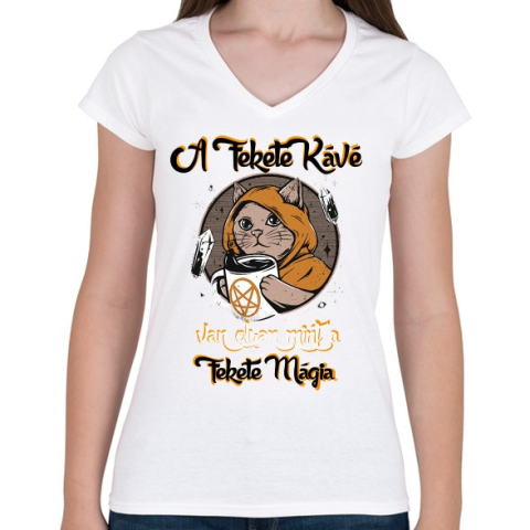 1 kép PRINTFASHION Fekete Kávé - Fekete Mágia - Női V-nyakú póló - Fehér