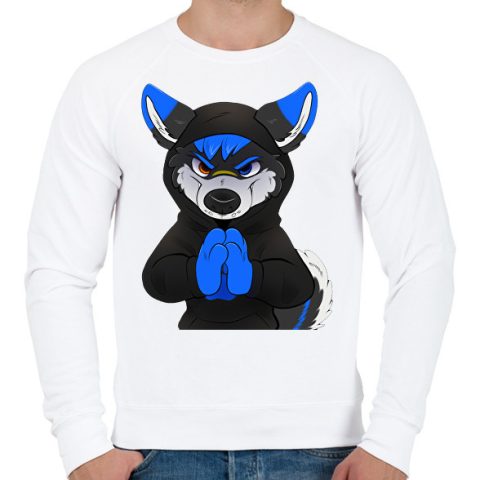 1 kép PRINTFASHION Fekete,kék vicces husky vagy farkas - Férfi pulóver - Fehér