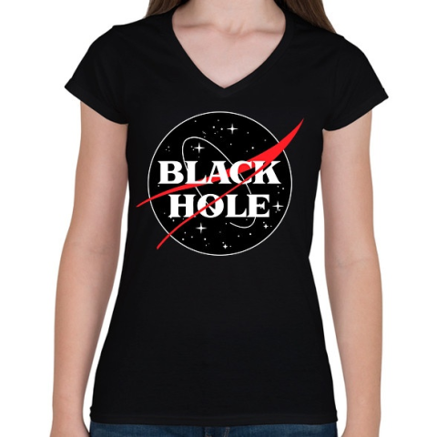 1 kép PRINTFASHION Fekete lyuk NASA paródia - Női V-nyakú póló - Fekete