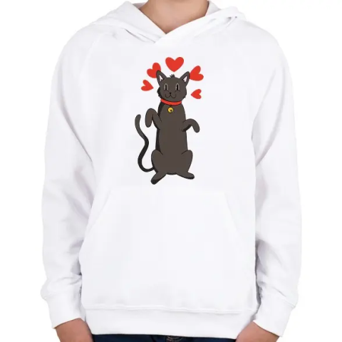 1 kép PRINTFASHION Fekete macska - Gyerek kapucnis pulóver - Fehér
