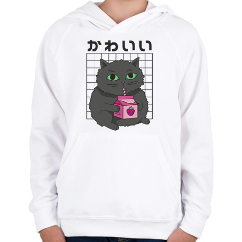 1 kép PRINTFASHION Fekete macska - Gyerek kapucnis pulóver - Fehér