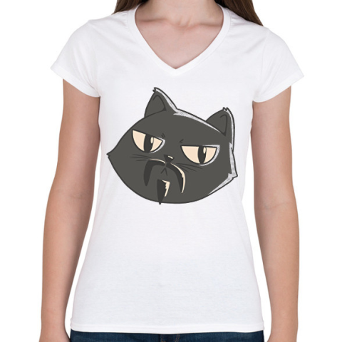 1 kép PRINTFASHION Fekete macska - Női V-nyakú póló - Fehér