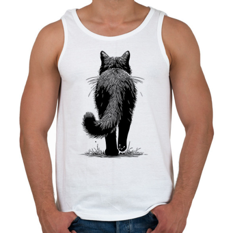 1 kép PRINTFASHION Fekete macska rajz - Férfi atléta - Fehér