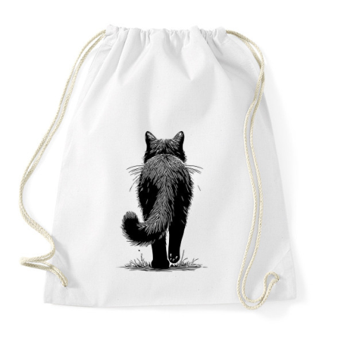 1 kép PRINTFASHION Fekete macska rajz - Sportzsák, Tornazsák - Fehér