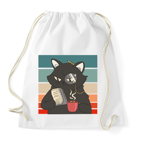1 kép PRINTFASHION Fekete macska - Sportzsák, Tornazsák - Fehér