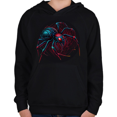 1 kép PRINTFASHION Fekete özvegy - Gyerek kapucnis pulóver - Fekete
