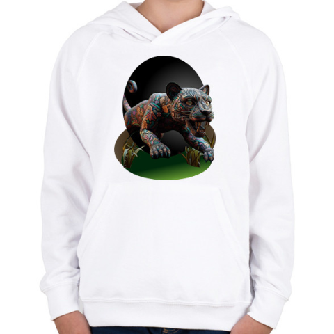 1 kép PRINTFASHION Fekete párduc - Gyerek kapucnis pulóver - Fehér