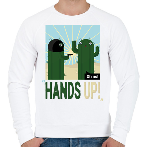 1 kép PRINTFASHION Fel a kezekkel! - Kaktusz - Férfi pulóver - Fehér