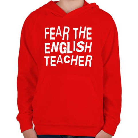 1 kép PRINTFASHION Félelem az angol tanártól! - Gyerek kapucnis pulóver - Piros