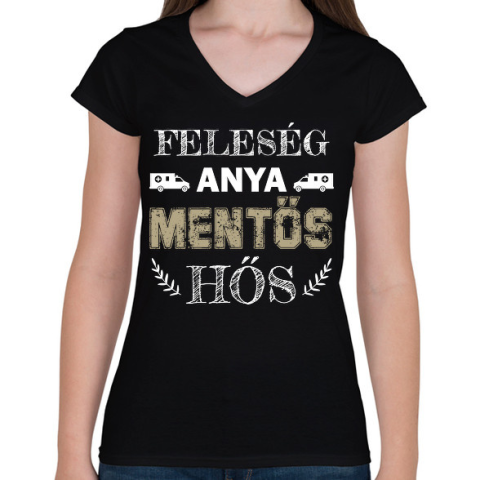 1 kép PRINTFASHION Feleség, anya, mentős, hős - Női V-nyakú póló - Fekete