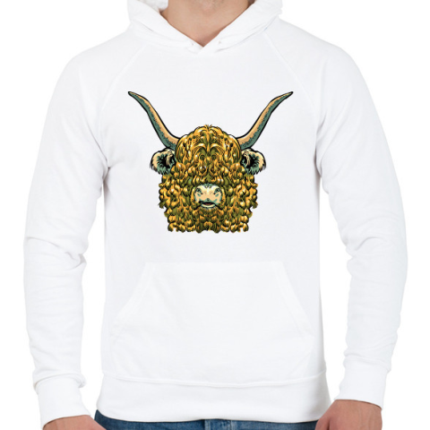 1 kép PRINTFASHION Felföldi marha - Férfi kapucnis pulóver - Fehér