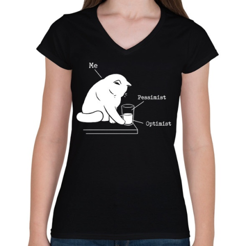 1 kép PRINTFASHION Félig üres vagy félig tele? - Női V-nyakú póló - Fekete