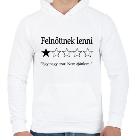 1 kép PRINTFASHION Felnőttnek lenni... "Egy nagy szar. Nem ajánlom." - Férfi kapucnis pulóver - Fehér