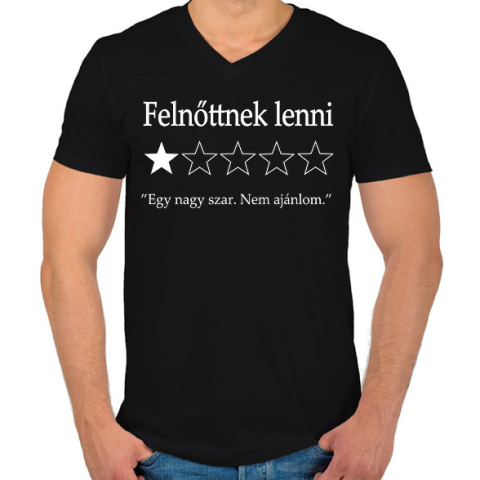 1 kép PRINTFASHION Felnőttnek lenni... "Egy nagy szar. Nem ajánlom." - Férfi V-nyakú póló - Fekete