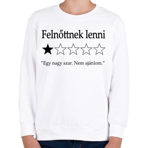 1 kép PRINTFASHION Felnőttnek lenni... "Egy nagy szar. Nem ajánlom." - Gyerek pulóver - Fehér