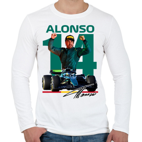 1 kép PRINTFASHION Fernando-Alonso - Férfi hosszú ujjú póló - Fehér