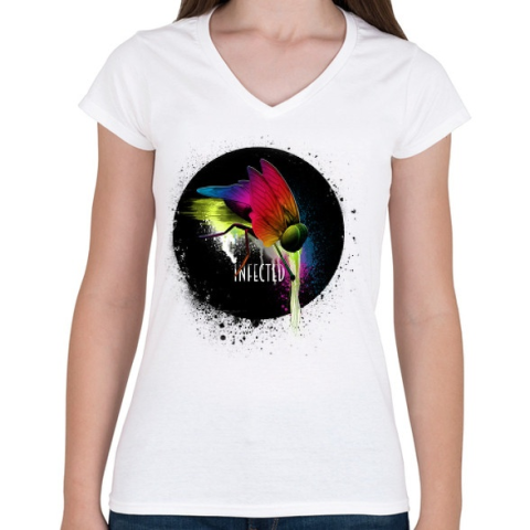 1 kép PRINTFASHION Fertőzött - Női V-nyakú póló - Fehér