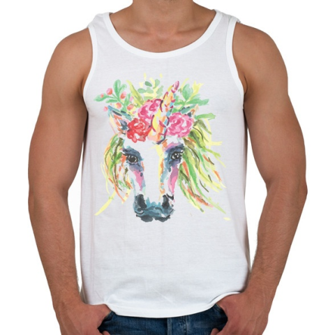 1 kép PRINTFASHION Festett egyszarvú virágokkal - Férfi atléta - Fehér