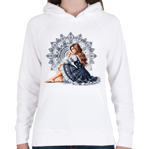1 kép PRINTFASHION Fiatal lány népies ruhában - Női kapucnis pulóver - Fehér